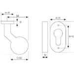 Gałka w kształcie kuli z odsadzeniem (odgięta). Mocowanie do drzwi przy
