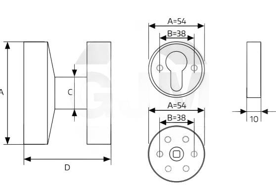 Jednostronna gałka, do użytku w drzwiach wejściowych.