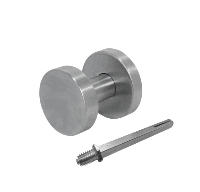 GAŁKA drzwiowa stała, płaska na okrągłym szyldzie, stal nierdzewna.