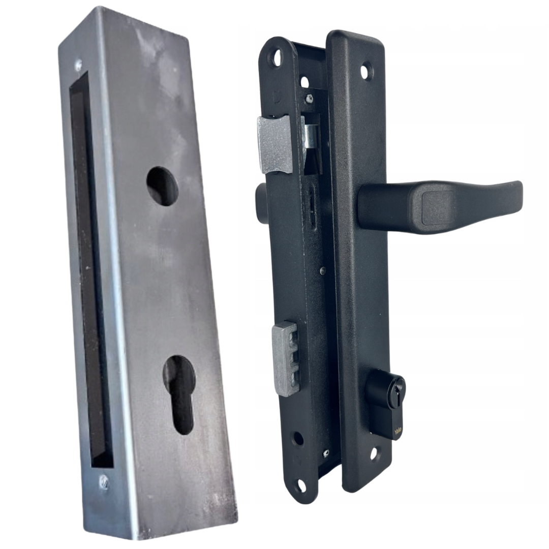 Kaseta 60x40 z zamkiem klamka wkładką w kolorze czarnym zestaw do furtki
