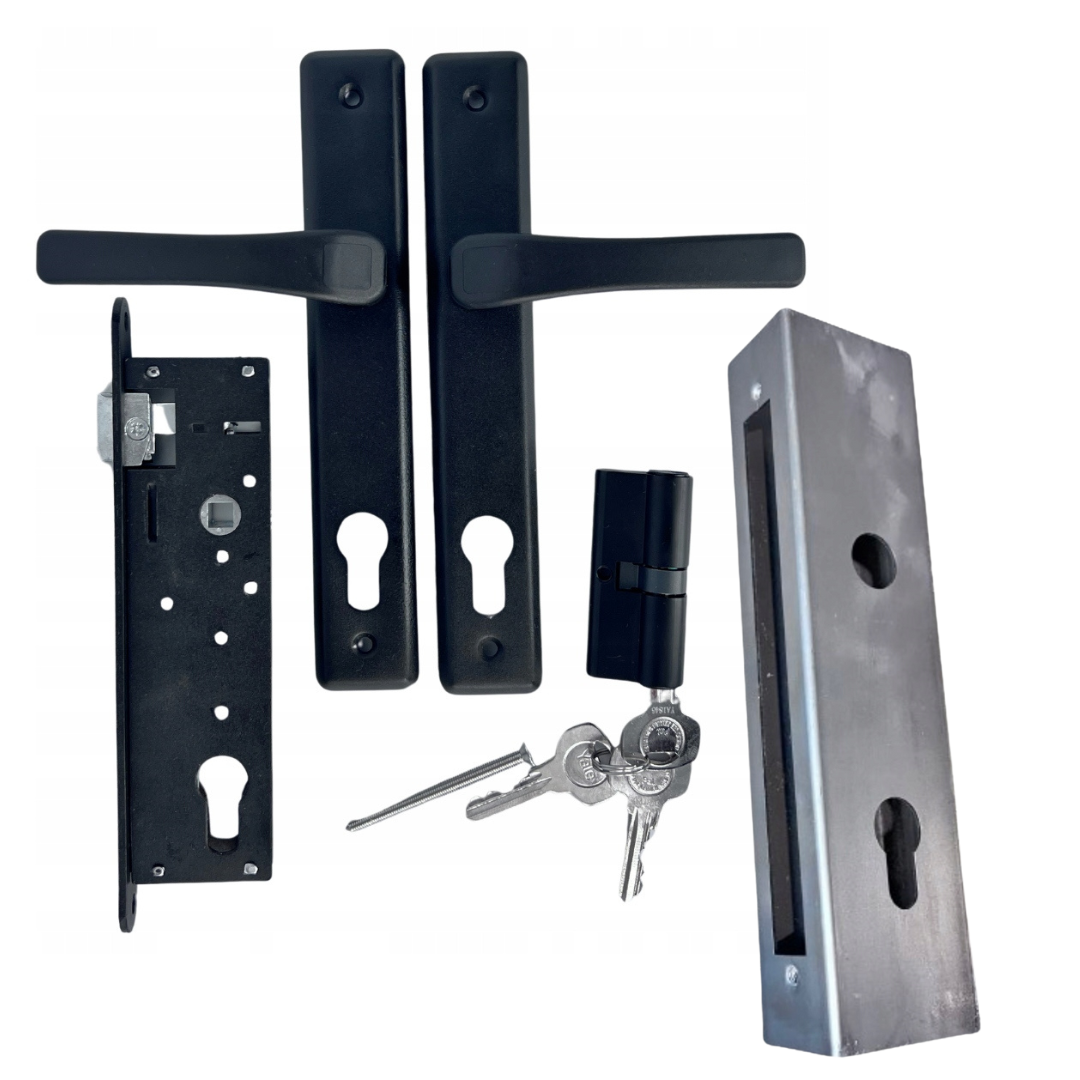 Kompletny zestaw do furtki - idealny do kompletnego wyposażenia Twojej furtki lub bramki. Zestaw obejmuje kasetę klamkę, zamek, wkładkę furtki, zapewniając bezpieczeństwo i wygodę użytkowania.