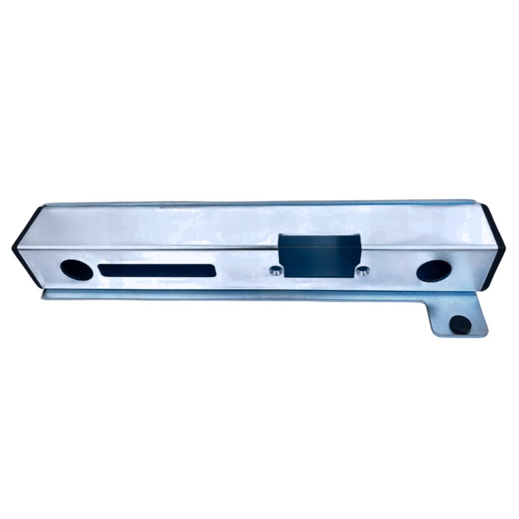 - Pionowa, prostokątna szczelina w centralnej części, przeznaczona do blokady rygiela