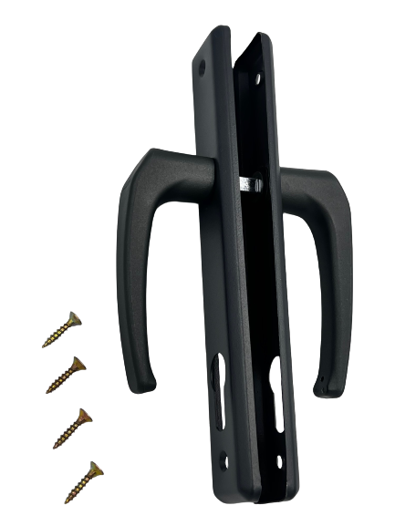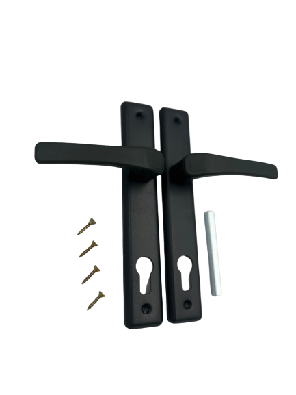 Klamka drzwiowa wykonana z aluminium, natomiast szyld z wysoko gatunkowej stali jaka dodatkowo została ocynkowana galwanicznie. Całość pomalowana lakierem proszkowym