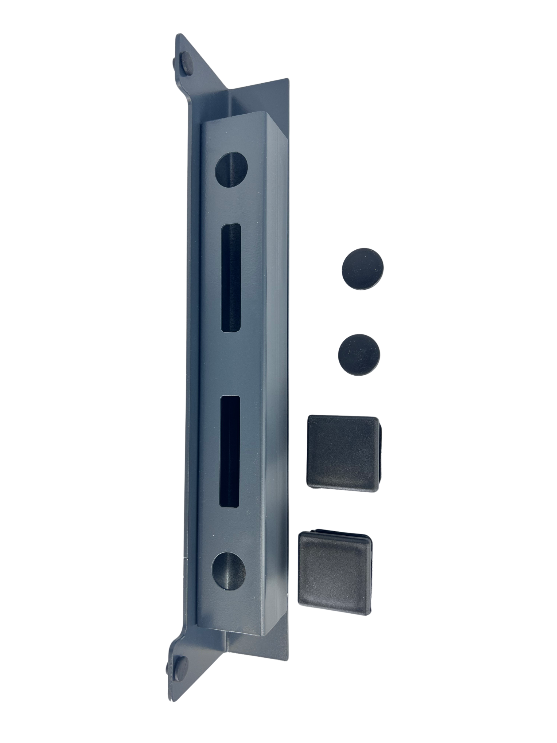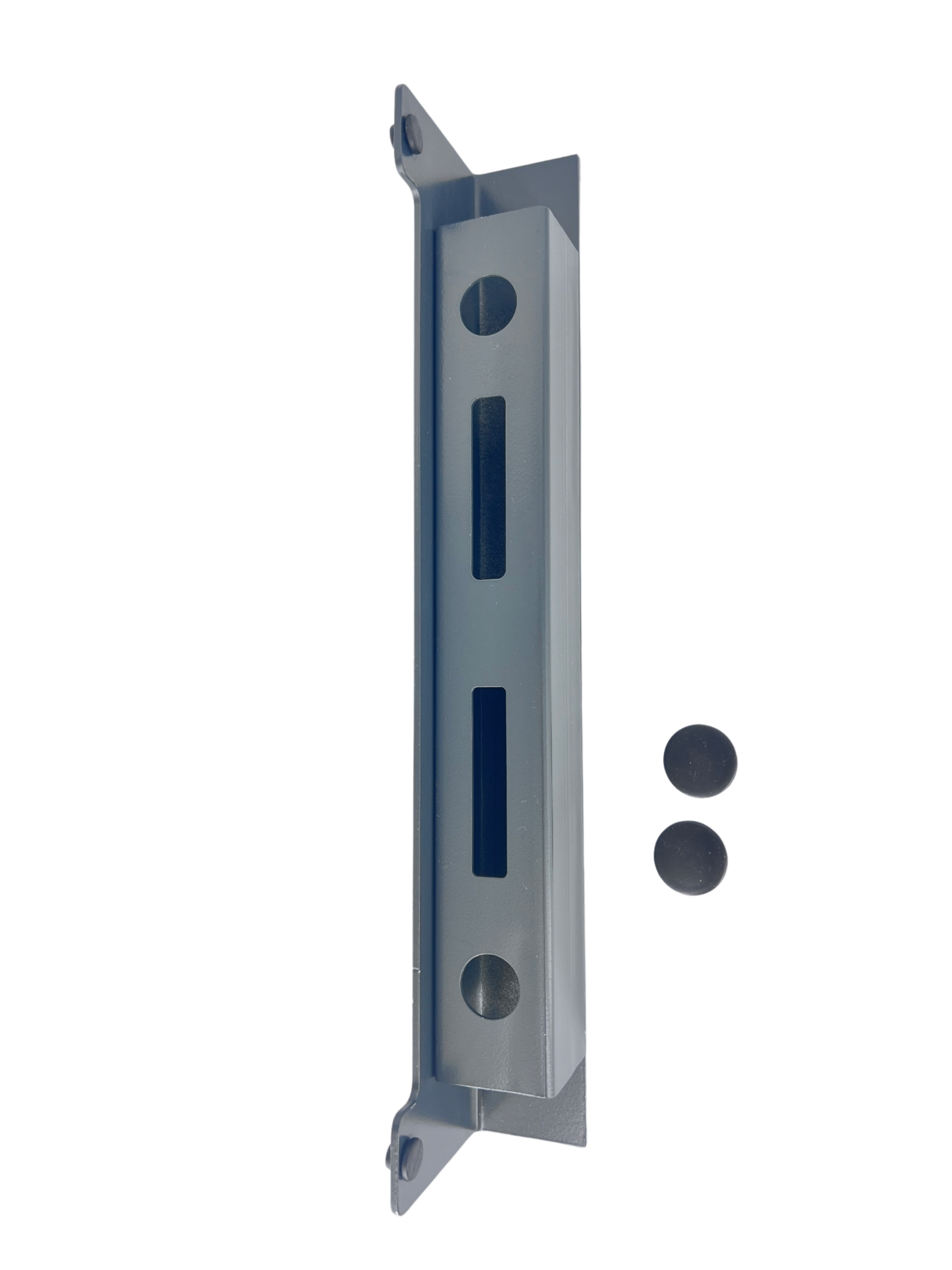Ogranicznik uniwersalny ,omija szyld klamki przy zamknięciu. Można zastosować do zamka (90/22,90/20) lub z większym odsadzeniem ,jak i pod profile od 40x40 w górę.