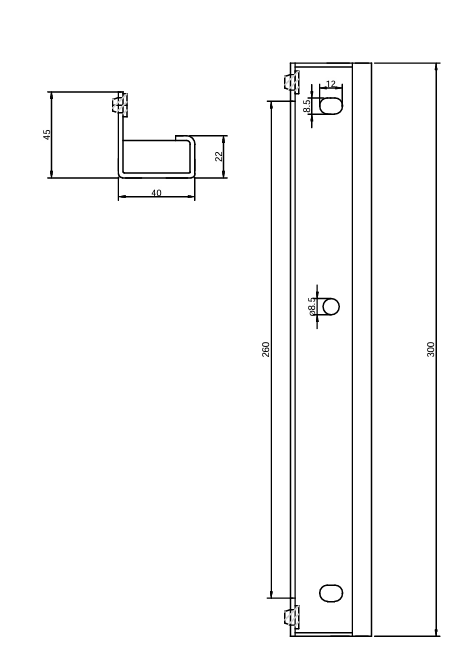 - Wymiary: 300x40x22