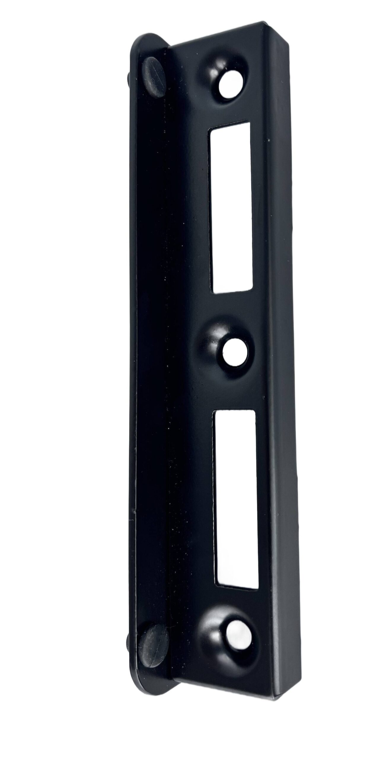 Zatrzask do furtki do przykręcenia ocynkowany i malowany proszkowo kolor ANTRACYT RAL 9005 Wersja z 2 gumkami na odbojniku, trzema otworami montażowymi i ząbkami zapobiegającymi przesuwaniu się odboju na słupku. Zastosowanie do bram, krat i furtek.
