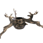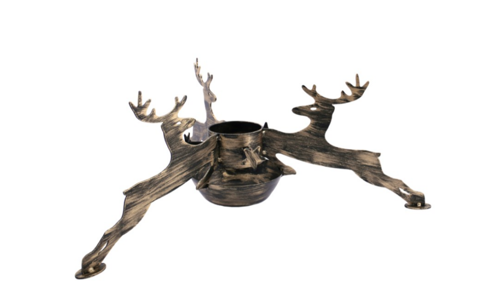Ozdobny stojak pod choinkę "RENIFER" ze zbiornikiem na wodę, średnica otworu montażowego do 105 mm wyposażonego w śruby blokujące drzewko z trzech stron. Rozstaw podpór 380mm, wysokość całkowita 230mm.
