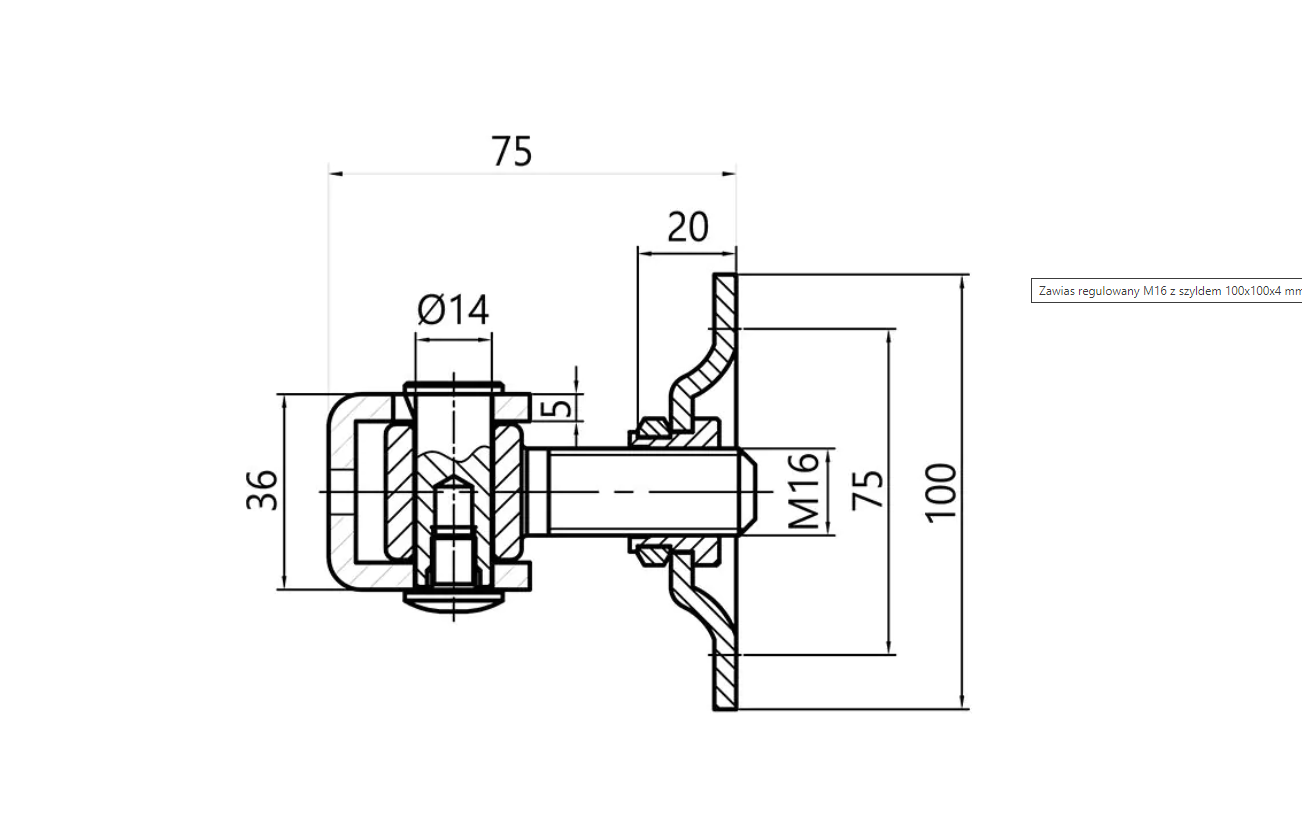 Zawias regulowany M16 z szyldem 100x100x4 mm do furtek i bram skrzydłowych