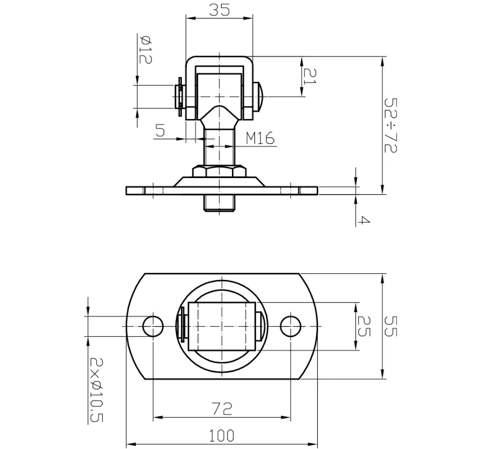 Zawias regulowany M16 z szyldem prostokątnym 100x55x4 mm