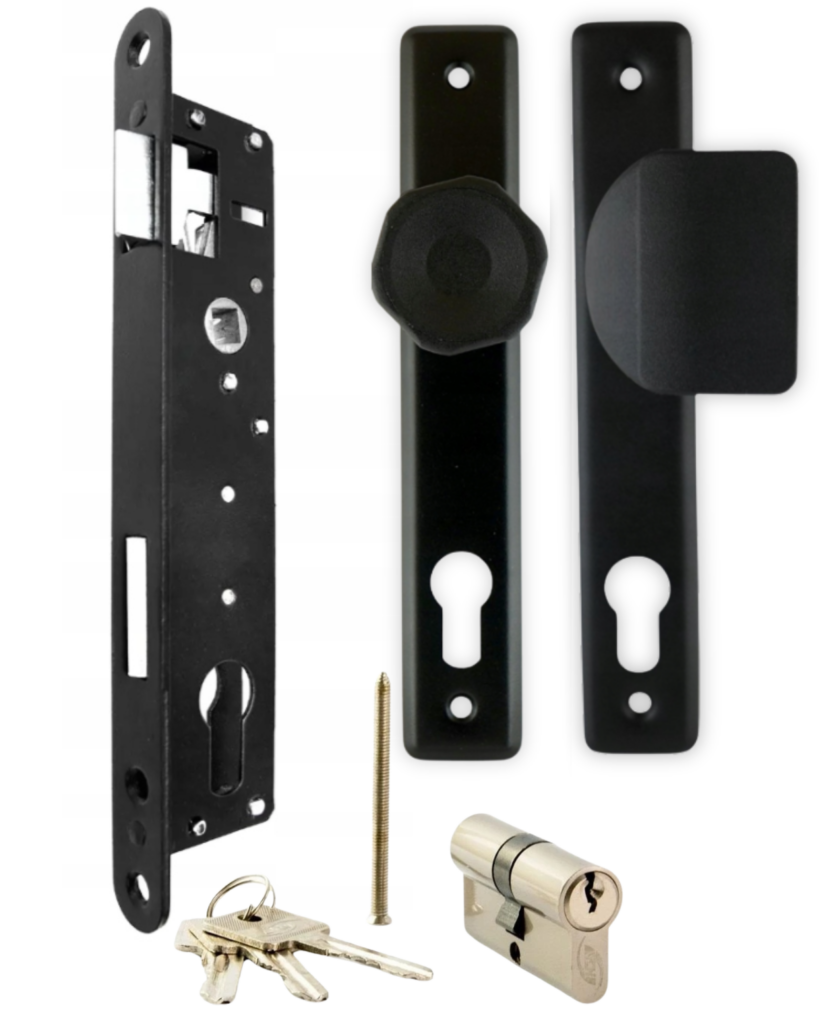 Zestaw do furtki komplet furtkowy gałko-pochwyt prawy zamek wąski wkładka