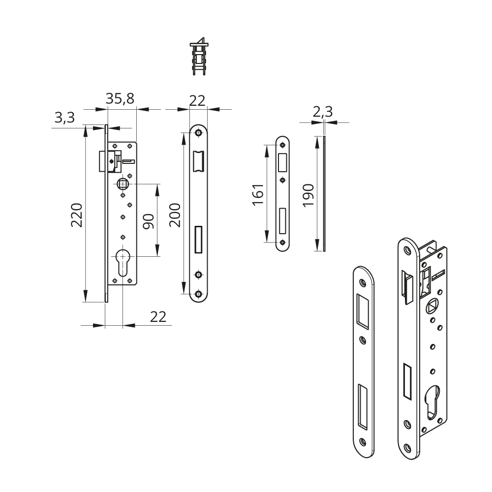 ✔️ Zamek wpuszczany (standard 90 mm)